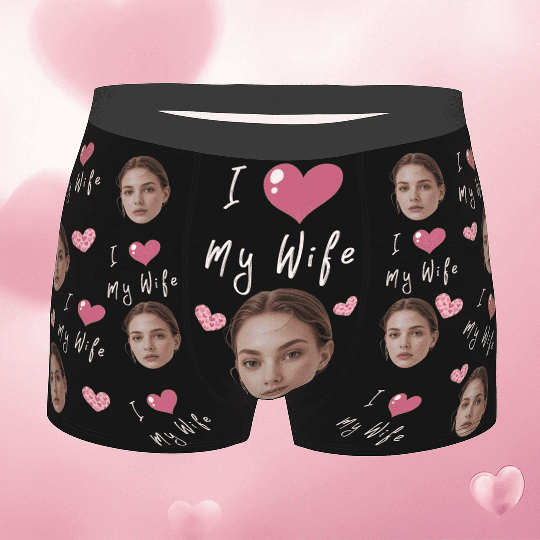 【Byxhuc】Customized Boxers with Face, I Heart My Wife Custom Face Boxers, Christmas Anniversary Thanksgiving Birthday Gifts for Boyfriends Husband Him Mens