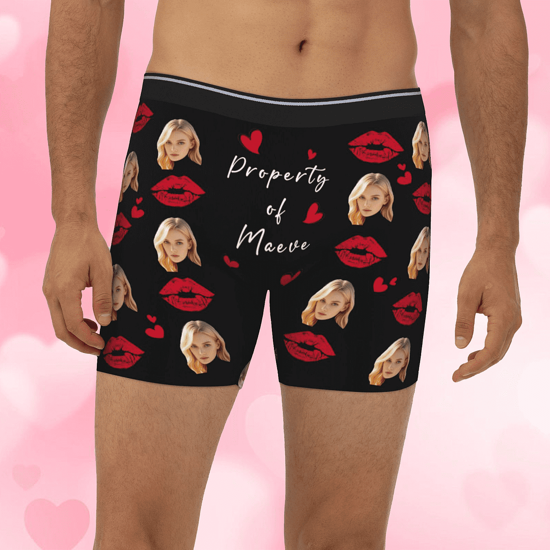 【Byxhuc】Custom Property of Name Boxer for Men, Lips Customized Boxers with Picture, Personalized Gifts for Him Husband on Birthday Valentines Christmas